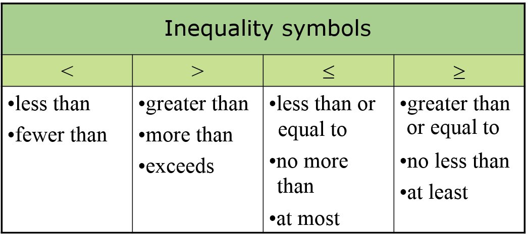 For example, if we have the statement “x <= 5," it means that the value of x can be any number less than or equal to 5. In simpler terms, x can be 5 or any number smaller than 5.